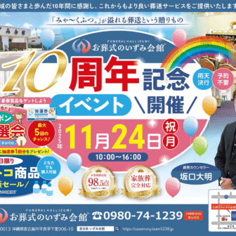 宮古島 イベント告知【いずみ会館10周年記念 イベント開催】💐地域のみなさまに支えられて✨🎊おかげさまで《10周年》🎊感謝の気持ちを込めて〜地域の皆さま…