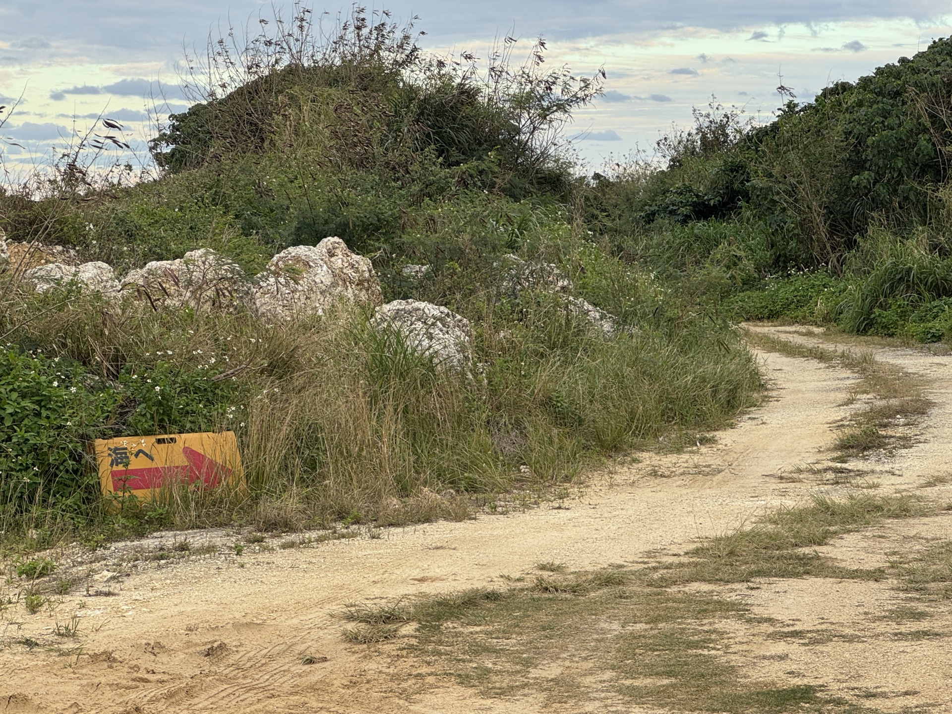 『海へ』という看板があり、この道を進むとビーチに出ます。