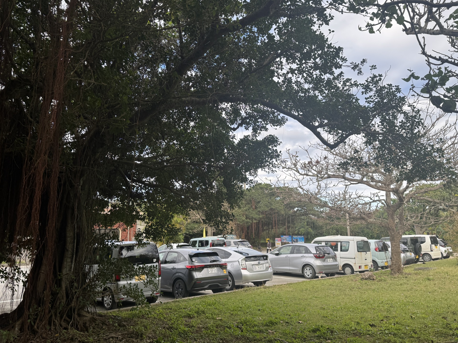 砂山ビーチには無料の駐車場が完備されております。駐車場の四つ角には雰囲気のある大きなガジュマルの木があります。訪れた際はぜひチェックしてみましょう。