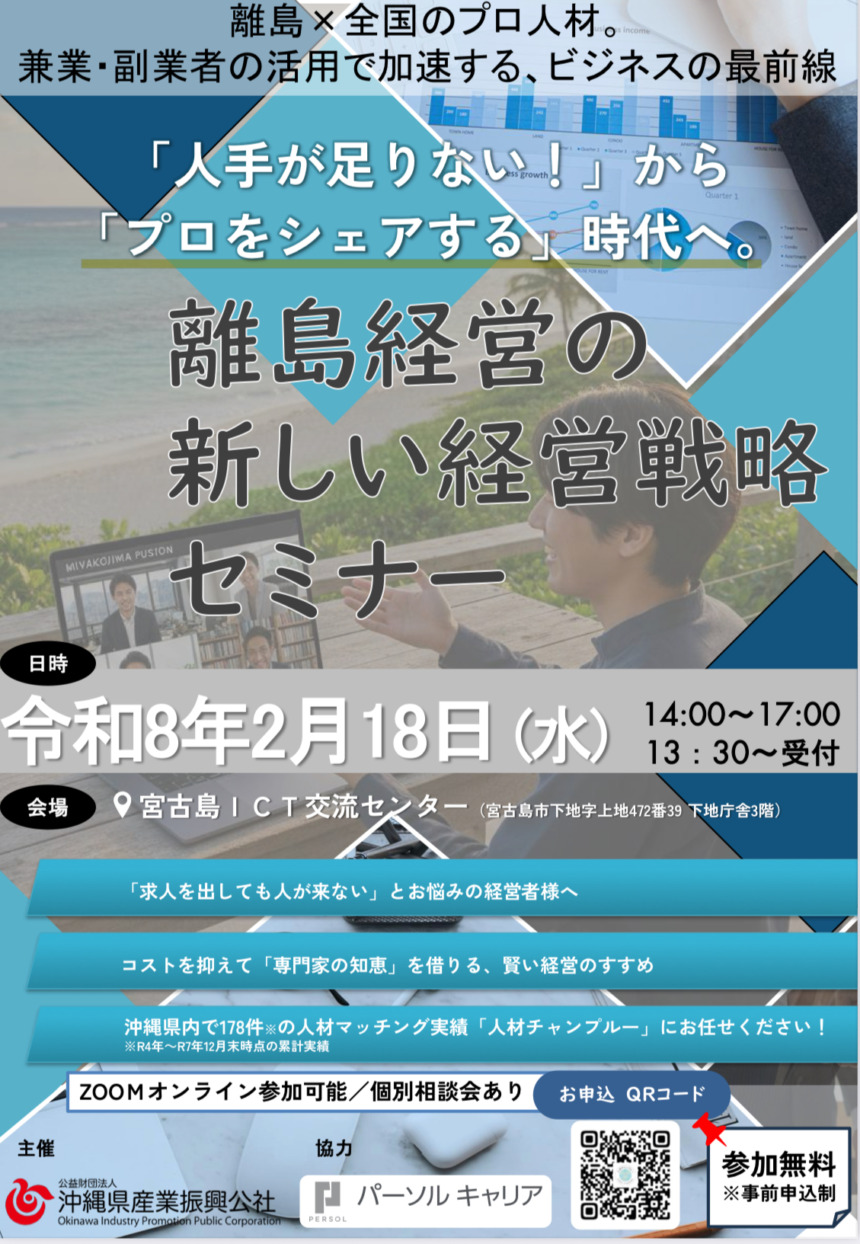 本セミナーでは、人手不足や採用の難しさにお悩みの事業者様向けに、外部プロ人材の活用方法と具体的な事例を専門家がわかりやすくご紹介します。ご関心のある方は、ぜひご参加ください。