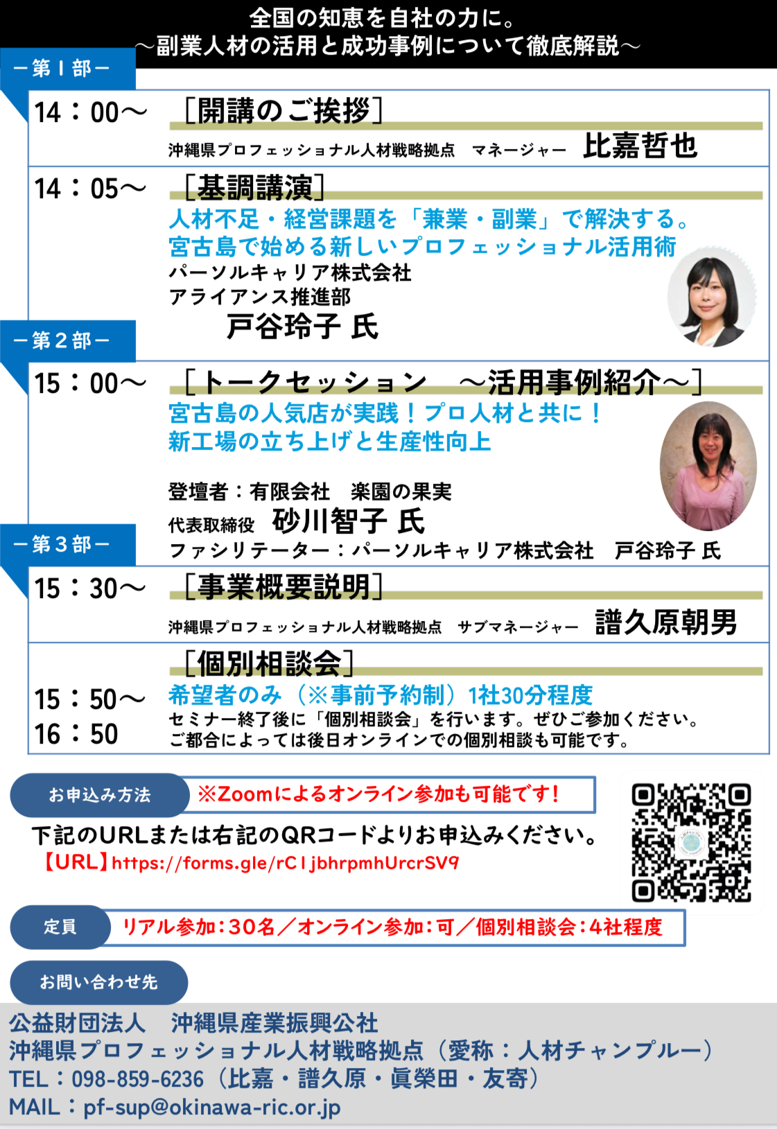 また、セミナー終了後には、外部プロ人材の活用について個別にご相談いただける「個別相談会」も実施いたします