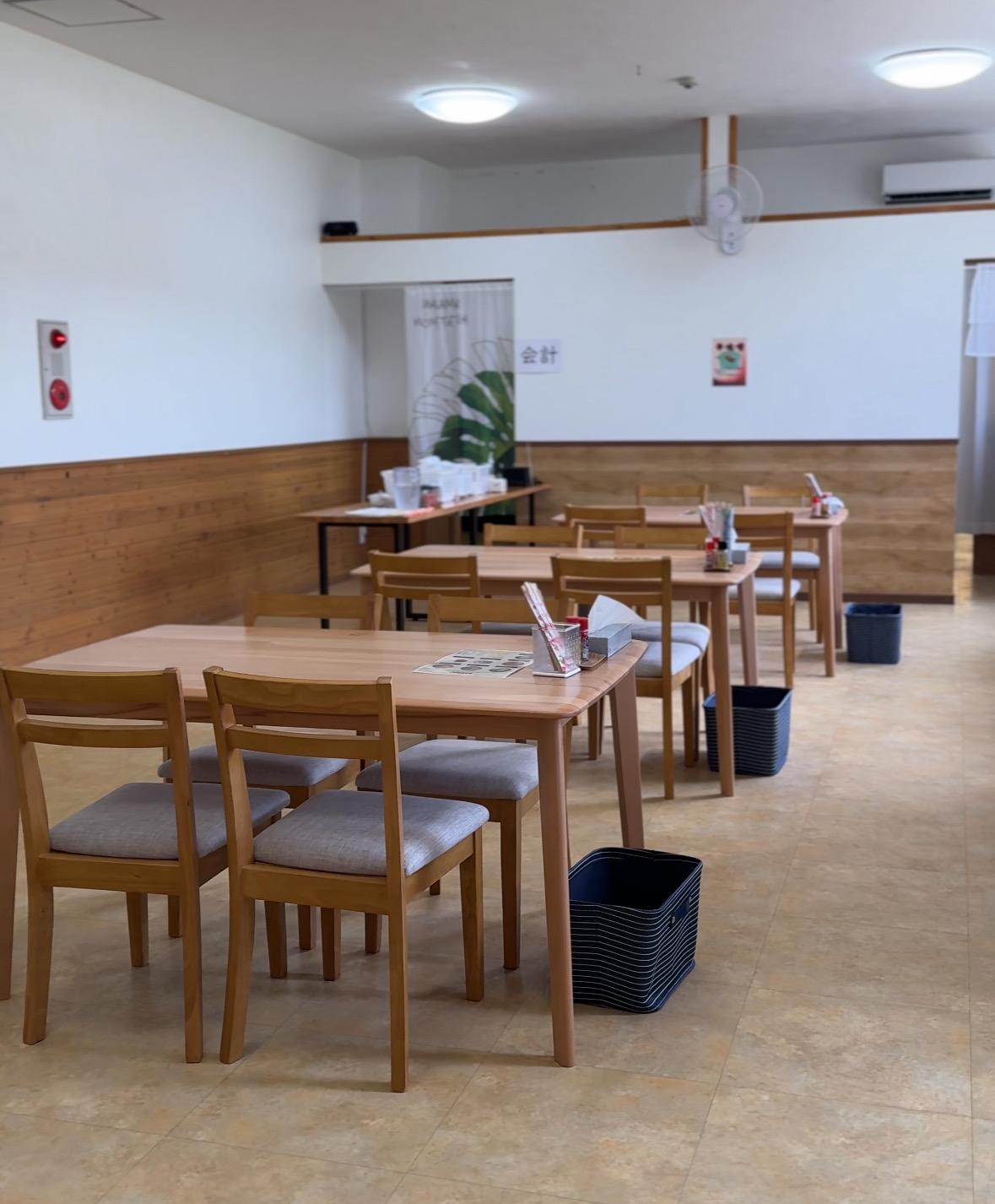 元々デイサービスの施設だった事務所を改装しているため店内は広々しています✨全席テーブル席となっていて、手すりなどのバリアフリーもしっかりしています😉お店の奥には個室もあるので小さなお子様がいる家族連れやグループの方々にもオススメできます!