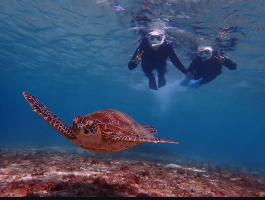ウミガメ遭遇率100%❗️コースは2種類✨人数に応じて最大3名のガイドでご案内いたします♫