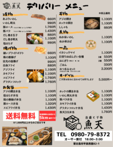 泡盛と干物 魚天はデリバリーも受け付けています🛵❣️なんと、半径5km圏内であれば、送料無料でお届けいたします😉
